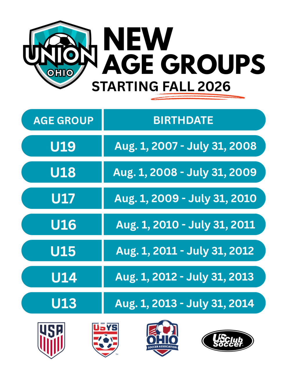 If you have any questions or concerns, please contact us at admin@unionsoccerohio.com.